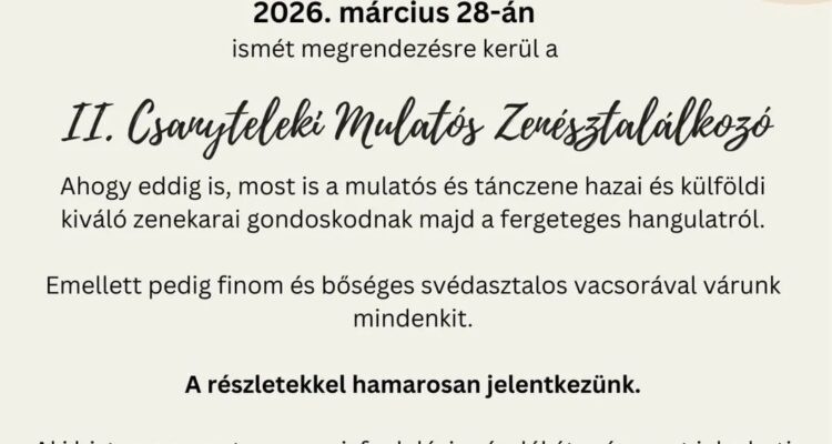 II. Csanyteleki Mulatós Zenésztalálkozó – 2026. március 28.
