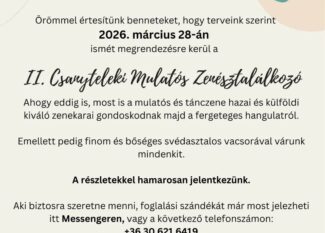Örömmel tájékoztatjuk a község lakosságát és az érdeklődőket, hogy 2026. március 28-án ismét megrendezésre kerül a II. Csanyteleki Mulatós Zenésztalálkozó.…